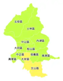 Taipei City was long seen as the stronghold of Kuomintang as many civil servants and Chinese migrants (or Waishengren) resided there.[2] Between 1951 and 1967, Taipei, then a provincial city, had an elected mayor,[3] and majority were Tangwai locals. After upgraded to a special municipality, Taipei has been headed by government-appointed indigenous mayors.[4]