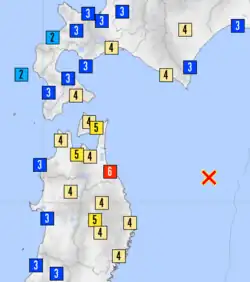 ![]() JMA seismic intensity map | |