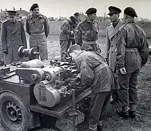 After weeks of bitter fighting around Hill 112 (Operation Jupiter) and Mont Pinçon (Operation Bluecoat), 43rd Division finally captured the latter on 7 August and prepared to bear down on the northern rim of the Falaise Pocket.[45][46][47] 204th Fd Co discovered how strong the opposition would be when No 1 Platoon found itself under heavy machine gun fire from both flanks while clearing the route to Le Plessis Grimault at the foot of Mont Pinçon. They deployed to attack but found their firepower inadequate and the company commander withdrew the platoon by sections to the vehicles, aboard which they then shot their way through, followed by 207th Field Park Company's armoured bulldozer.[48]