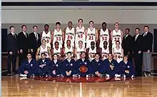 The Illini received an at-large as a No. 1 seed in the Midwest Region of the NCAA Tournament. Easy wins over Northwestern State[2] and Charlotte[3] led to a trip to the Sweet Sixteen. The Illini defeated Kansas in the Sweet Sixteen to advance to the Elite Eight.[4] However, the Illini run ended in the Elite Eight to eventual national runner-up Arizona, the third meeting between the two schools on the season.[5] Sophomore Frank Williams became the first Illini player to earn Big Ten Player of the Year honors since 1967 and was named to several postseason All-America squads. Junior Cory Bradford set an NCAA record by making a three-point field goal in 88 consecutive games.
