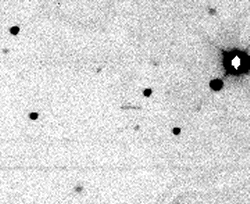 ![]() 2000 SG344 seen on 29 September 2000, as a dim streak in the center of the image, moving against the background field of stars | |