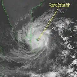 ![]() Cyclone 04B at peak intensity near landfall | |