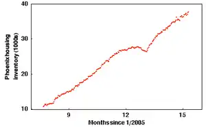 Plot of inflation-adjusted home price appreciation in several U.S. cities, 1990–2005:Plot of inflation-adjusted home price appreciation in several U.S. cities, 1990–2005. - ↑ "Is A Housing Bubble About To Burst?". BusinessWeek. July 19, 2004. Archived from the original on March 4, 2008. Retrieved March 17, 2008.