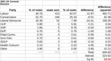 By the end of 2000, however, the dispute had been resolved and Labour were firmly back in the lead of the opinion polls.[6] In total, a mere 29 parliamentary seats changed hands at the 2001 Election.[7]