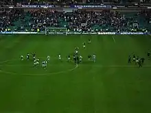 Although Hibs then lost home matches to Celtic and Inverness immediately after their European ties, they then went on another run of victories, this time five in succession. The highlight of this run was the 2–0 Edinburgh derby win against Hearts, which ended their unbeaten start to the season.[5] Despite a home defeat by Falkirk where Hibs had led 2–0, a convincing 2–1 win against Rangers led to media speculation that Hibs could challenge for the league title, which Tony Mowbray played down.[6]