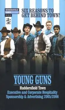 Before the start of the season 2005–06, the club launched the controversial 'Young Guns' campaign. The players, manager Peter Jackson, assistant manager Terry Yorath, and coach Martyn Booty posed for the 2006 calendar in cowboy outfits.[1] Six of the younger players featured on the cover of the corporate hospitality brochure. Basing the cover around the 'Young Guns' theme was widely considered to be a mistake and caused the booklet to be adversely linked with the Brokeback Mountain film.