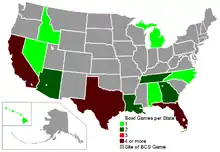 The Las Vegas All-American Classic at the University of Nevada, Las Vegas's Sam Boyd Stadium in Whitney, Nevada, was played on January 14, 2006, as a team of Division I-A and I-AA and NAIA all-stars from schools located east of the Mississippi River defeated a similarly constituted team from schools located west of the Mississippi for the first time in three years, 41–3. Miami (Florida) fullback Quadtrine Hill scored two of the East's first three touchdowns (on which two extra points were missed), one a rush and one a reception from Central Michigan quarterback Kent Smith, as the East took a 19–3 lead midway through the second quarter; between Hill's scores was a touchdown reception by Carroll College wide receiver Tyler Emmert, on a pass thrown by Murray State quarterback Daniel Rumley. An inconsistent offensive performance by the West and a taut defensive showing by the East held the West scoreless for the remainder of the game; the West team ultimately gained only 102 yards for the game. Tulane safety Tra Boger extended the East lead to 23 points in the third quarter, as he returned an interception thrown by Brett Elliott, a backup quarterback at Utah, 40 yards for a touchdown. Florida State running back James Coleman scored for the East in the third quarter, and, after successfully converting a two-point attempt, the East team took a 34–3 lead into the fourth quarter. Drives by each team stalled repeatedly in the second half, and the East's final touchdown came again on defense, as Boger returned a fumble 24 yards for a touchdown. Overall, each offense was inconsistent, and the teams combined for just 391 yards, only 157 of that on the ground. In total, 14 players whose teams appeared in bowl games participated for the East (four were supplied by Miami [Florida], from which the most East players came); the number was 16 for the West team, for whom the principal supplier was Iowa State (three players).