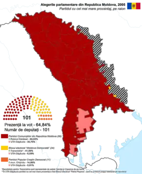Parliamentary elections were held in Moldova on 6 March 2005.[1] The result was a victory for the Party of Communists of the Republic of Moldova (PCRM), which won 56 of the 101 seats.[2]