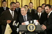 Manager Ozzie Guillén then led the White Sox to a World Series victory, their first in 88 years. Slugger Frank Thomas was not on the post-season roster because he was injured, but the team honored his perennial contributions to the franchise during Game 1 of the Division Series against the Boston Red Sox when he was chosen to throw out the ceremonial first pitch. "What a feeling," Thomas said. "Standing all around the place. People really cheering me. I had tears in my eyes. To really know the fans cared that much about me – it was a great feeling. One of my proudest moments in the game."[2]
