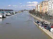 By April 22, the number of people evacuated from the locality reached 4,000.[3] In the port city of Călărași, a recently opened hotel was flooded on Monday, April 17, causing significant damage to the building and leading to the evacuation of tens of tourists.[4] By this date, the floods had swamped 730 km2 (280 square miles) of land, 400 kilometres (250 mi) of roads and destroyed 20 bridges, while also causing agricultural damage amounting to 4.6 million lei (US$1.5 million). Additionally, five of Romania's nine Danube ports were closed during the flooding period.[1] However, Romanian authorities said on April 22 that the worst of the flooding had passed. Elena Anghel, hydrologist at Romania's National Hydrology Institute stated that, "The forecasts are optimistic. The river will probably remain stable for another two days and then start to fall."[3]