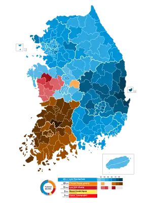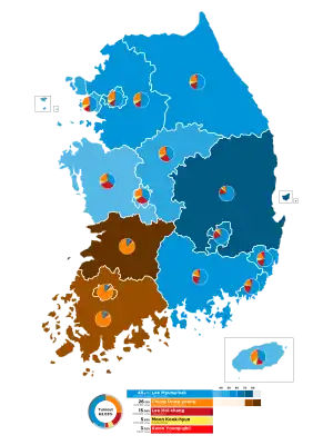 South Gyeongsang | 843,662 | 55.0 | 189,463 | 12.4 | 329,486 | 21.5 | 73,893 | 4.8 | 82,645 | 5.4 |