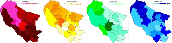 Liberal Democrats | 8 | 2 | 1 | +1 | 33.3 | 22.8 | 7,857 | −8.6 | |