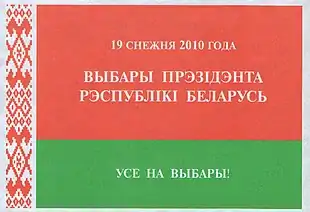 Presidential elections were held in Belarus on 19 December 2010.[1] The elections had originally been planned for the beginning of 2011. However, the final date was set during an extraordinary session of the National Assembly on 14 September 2010.[2]