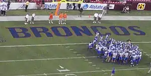 The 2010 Boise State Broncos football team represented Boise State University in the 2010 NCAA Division I FBS football season. The Broncos were led by fifth-year head coach Chris Petersen and played their home games at Bronco Stadium. They entered the 2010 season with winning streaks of 14 games overall and 25 games in regular-season play. This was the Broncos' final season as a member of the Western Athletic Conference, as the school announced on June 11, 2010, that it would leave the WAC for the Mountain West Conference effective July 1, 2011.[1]