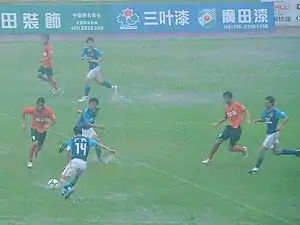 Guangzhou played against Guangzhou rivals Guangdong Sunray Cave in the heavy rain on 29 May 2010