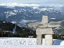 The 2010 Winter Olympics logo was unveiled on April 23, 2005, and is named Ilanaaq the Inunnguaq. Ilanaaq is the Inuktitut word for friend. The logo was based on the Inukshuk (stone landmark or cairn) built by Alvin Kanak for the Northwest Territories Pavilion at Expo 86 and donated to the City of Vancouver after the event. It is now used as a landmark on English Bay Beach.