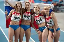 ![]() Kseniya Zadorina Kseniya Vdovina Yelena Migunova Olesya Forsheva | 3:29.34 | ![]() Kelly Sotherton Lee McConnell Marilyn Okoro Jenny Meadows | 3:31.36 | ![]() Muriel Hurtis-Houairi Laetitia Denis Marie Gayot Floria Gueï | 3:32.16 |
