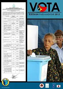 : CS1 maint: bot: original URL status unknown (link) (PDF; 1,4 MB) - ↑ "IFES Election Guide | Elections: Timor-Leste Parl 2012". www.electionguide.org. Retrieved 18 December 2022.