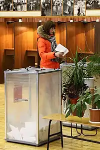 Putin received 63.6% of the vote,[3] securing a third overall term. Organization for Security and Co-operation in Europe observers assessed the voting on the election day positively overall, but assessed the vote count negatively in almost one-third of polling stations due to procedural irregularities.[4][5]