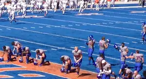 Quarterback Joe Southwick set a Boise State and Mountain West record for completion percentage completing 27 of 29 passes (93.1%). The Broncos were allowed to wear their all blue uniforms for the first time during a home conference game since joining the Mountain West in 2011.