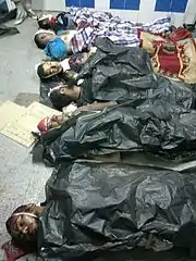 Ensuing protests in favour of Morsi were violently suppressed culminating with the dispersal and massacre of pro-Morsi sit-ins on 14 August 2013, amid ongoing unrest; journalists[27] and several hundred protestors were killed by police and military force. Muslim Brotherhood members claim 2,600 people were killed.[28] Human Rights Watch documented 904 deaths, describing it as crimes against humanity and "one of the world's largest killings of demonstrators in a single day in recent history," while the government puts the figure at 624.[29][6]