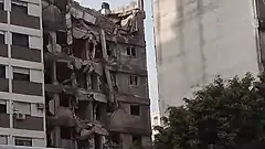 The natural gas supplier, Litoral Gas, immediately began sealing the distribution pipe to the area.[10] The Center for Ambulatory Medical Specialties of Rosario (Spanish: Centro de Especialidades Médicas Ambulatorias de Rosario) managed the information about the dead and injured, and tents were prepared for those left homeless.[11] Firefighters and other workers found people trapped on the upper floors of buildings and evacuated them over adjacent roofs.[12] Although the building was not destroyed by the explosion, a high risk of structural failure remained.[13]