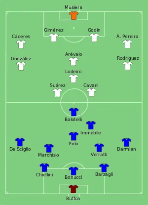 - ↑ "FT: Italy 0 Uruguay 1". Kickoffnigeria.com. Kick Off 2014. Archived from the original on 15 July 2014. Retrieved 25 June 2014.