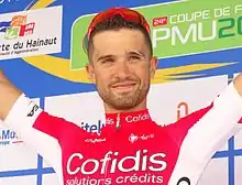 Wellens was caught by the peloton in the final 2 kilometres (1.2 miles), before a failed move by a trio consisting of Daniel Oss, Tony Martin (Etixx–Quick-Step) and Bram Tankink (LottoNL–Jumbo).[25] Tony Gallopin (Lotto–Soudal) launched a late attack, but was caught during the bunch sprint that was won by Nacer Bouhanni, his second stage victory of the race.[26] There were no changes to the classifications.[23]