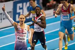 Maslák, the 400 m champion from the 2013 European Athletics Indoor Championships, led the Czech team for the championships, which at 46 athletes was the country's largest squad ever for the competition. Libor Varhaník, chairman of the organising committee, specifically aimed to have as many Czech athletes compete in the events as possible in order to build local interest and boost ticket sales. The opening ceremony was held on 5 March – a day before the main competition began on Friday (although shot put and men's long jump qualifying was held that evening).[11][12] Former international high jumper and European indoor medallist Tomáš Janků was appointed as CEO and committee member of the organising group.[4]