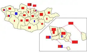 3. 1 2 3 4 5 Mongolia's new election rules handicap smaller parties, clear way for two-horse race Archived 2016-07-01 at the Wayback Machine Reuters, 20 May 2016