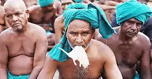 - ↑ Scroll Staff. "Protesting Tamil Nadu farmers eat human excreta to draw Centre's attention". Scroll.in. Retrieved 14 January 2021.