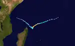 On 6 November, a tropical depression formed well to the east-northeast of Madagascar.[10] The system continued to track generally west-southwestward into more favorable conditions for the next few hours, before strengthening into a Moderate Tropical Storm and was named Alcide later that day.[11] On 7 November at 06:00 UTC, Alcide strengthened into a tropical cyclone, or a Category 1-equivalent tropical cyclone on the Saffir–Simpson hurricane wind scale (SSHWS)[12] On 8 November at 06:00 UTC, Alcide strengthened into an intense tropical cyclone, or a Category 3-equivalent tropical cyclone on the SSHWS, with maximum 10-minute sustained winds of 90 knots (165 km/h; 105 mph) and a minimum central pressure of 965 hPa(mbar).[13] It was downgraded to a tropical cyclone 6 hours later, mostly due to cooler sea temperatures and generally less favorable conditions.[14] Alcide continued to weaken as it began an anticyclonic loop east of the northern tip of Madagascar, falling to tropical storm status at 12:00 UTC on 9 November.[15] The system rapidly deteriorated thereafter, falling to tropical depression status at 00:00 UTC on 11 November; Météo-France discontinued advisories at noon that day.[16][17] The system continued east as a remnant low until 13 November, when the remaining convection vanished due to wind shear.