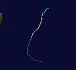 On December 16, Météo-France tracked a low-pressure which had a chance of possible tropical cyclone development. While tracking southwest, it then intensified to tropical storm status and then cyclone status. On December 23, it passed east of Mauritius, bringing beneficial rainfall and gusting winds that knocked down tree branches. It then turned southeast and weakened, later dissipating in the far southern reaches of the basin.[29][30]