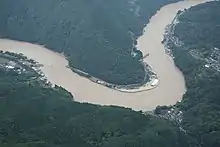 The Kuma River overran its bank in eleven different locations and breached one levee.[14] In Kuma, Kumamoto, stranded residents were rescued by a rescue helicopter.[13] Eight homes were swept away in Ashikita, Kumamoto.[7] In Tsunagi, Kumamoto, 2–3 people were pulled out of a landslide without signs of life.[13] Some 8,000 homes were left without power in Kumamoto and Kagoshima according to the Kyushu Electric Power Company.[13] Another 6,100 houses were estimated to be submerged, 11 bridges destroyed[15] and 4,700 buildings destroyed, damaged or flooded.[3]