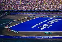 Ma Qinghua would be the next one to retire, crashing at turn 3. Meanwhile in the front, Jean-Éric Vergne would battle his teammate da Costa, in an attempt to overtake Buemi, which was the goal Techeetah were trying to accomplish. Da Costa would eventually stay ahead of Vergne and would soon overtake Buemi himself, moving up to third place.[16] Daniel Abt would retire in pits after he spun at turn 1 on lap 29.[17] Da Costa would then go on to chase Bird, who would later crash while in attack mode phase at turn 3 during lap 32. Bird got back going, but crashed again in Foro Sol, where he stayed parked for the rest of the race.[15] Stoffel Vandoorne would also hit the barriers on the penultimate lap, eventually finishing the race a lap down with a severely damaged car.[16] Vandoorne was not classified in the results, despite crossing the finish line while pitting.[19]