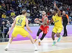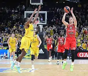 ![]() Guard Nemanja Nedović shooting in a game against ALBA Berlin in November 2022 | |||