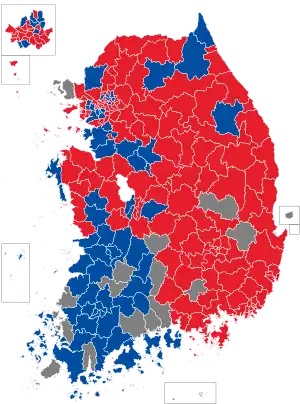 - ↑ Choi, Choi (1 June 2022). "South Korea's ruling party cements presidential win with local vote success". Reuters. Retrieved 2 June 2022.