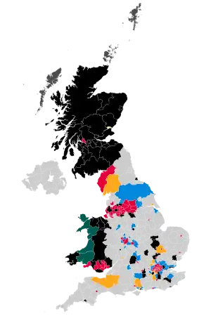 ![]() Map showing party control of councils following the elections.