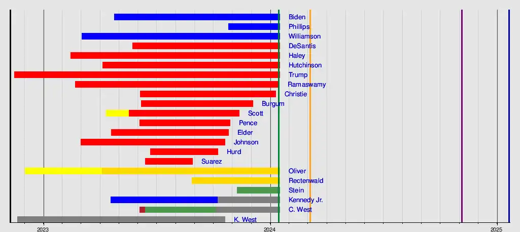 - March 3: The DNC declares their full support for President Biden's re-election, stating they do not plan to host any official debates.[42]