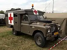 Land Rover Series IIA Ambulance was used by the hospital until 1985 when it was replaced by the Land Rover Battlefield Ambulance. This specific vehicle was used by the Royal Netherlands Army.