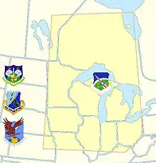 The 23rd AD was responsible for the air defense of a large area of the upper Midwest south of the 97th meridian west, bordered by the southern boundary of the Canada–United States border to the Ohio/Pennsylvania border; south and west along the western ridge of the Appalachian Mountains to the 38th parallel north. This encompassed most of Minnesota, Iowa, Northern Missouri, Wisconsin, Illinois, Indiana, Ohio and all of Michigan.[1] It was also the command organization for the Semi Automatic Ground Environment (SAGE) Data Center (DC-10) at Duluth Air Force Station.