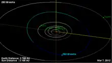 - ↑ Yeomans, Donald K., "293 Brasilia", JPL Small-Body Database Browser, NASA Jet Propulsion Laboratory, retrieved 11 May 2016.