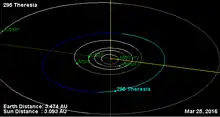 - ↑ "295 Theresia". JPL Small-Body Database. NASA/Jet Propulsion Laboratory. Retrieved 11 May 2016.