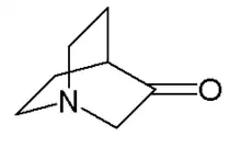 3-Quinuclidinone is a bicyclic organic compounds with chemical formula HC(C2H4)2(C(O)CH2)N. Its basicity is indicated by the pKa of the conjugate acid, which is 7.2. In contrast quinuclidine is about 100x more basic.[2]