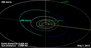 - 1 2 3 4 5 6 7 8 "JPL Small-Body Database Browser: 369 Aeria (1893 AE)" (2017-07-03 last obs.). Jet Propulsion Laboratory. Retrieved 24 October 2017.