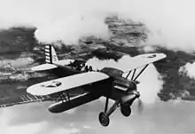 In October 1930 the squadron was once again activated at Selfridge Field, Michigan,[note 5] where it was attached to the 1st Pursuit Group and equipped with various models of the Curtiss Hawk series of single engine biplane pursuit aircraft.[1] By 1932, the squadron's primary aircraft became the Boeing P-12, although the squadron continued to fly the P-6 model of the Hawk. As part of its mission to develop pursuit tactics, the squadron continued to fly a variety of other aircraft, notably including the Berliner-Joyce P-16 and Consolidated P-30 two-seat fighters. Training of fighter pilots and testing of tactics continued after 1932 when the squadron moved to Langley Field, Virginia, where it was assigned to the 8th Pursuit Group.[1][4]