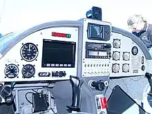 The control sticks are located conventionally in front of each seat. The standard throttle arrangement is one panel-mounted centre throttle, but a second throttle located on the left side of the panel is optional, allowing the left-seat pilot to fly with either hand on the throttle or stick.[1]
