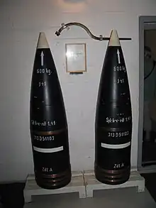- Adolf shell (long range shell) 600 kg (1,300 lb) German type L/4.2