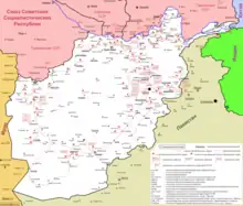 From September 1989 the Army commander was General Lieutenant Anatoliy Semenovich Ryabtsev (ru:Рябцев, Анатолий Семёнович).[16] Moscow ITAR-TASS World Service in Russian of 0840 GMT 16 April 1992 reported that Ryabtsev was born in Rostov Oblast. He had graduated from the Ulyanovsk Tank School and the Armored Tank Troops and General Staff Academies. He had commanded a regiment, division, and, from 1989, the 40th Army. [The 40th Army] 'is now under the jurisdiction of Kazakhstan.' Apparently there was a struggle in early 1992 between Ryabtsev and Colonel General Georgy Kondratyev, the commander of the Turkestan Military District. "By February 1992, Ryabtsev finally ceased to obey the administration of the district, and in particular to me, as commander. And then he sent a telegram that he was no longer subordinate to the TurkVO and was subordinate only to the President of Kazakhstan, Nazarbayev."[17] Kondratyev got the Military Council of the Turkestan Military District to petition the Soviet Minister of Defence to remove Ryabtsev from the post of army commander. But Ryabtsev complained to Nazerbayev, who cancelled the order.