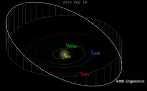 - 1 2 3 4 5 "JPL Small-Body Database Browser: 4388 Jurgenstock (1964 VE)" (2017-09-25 last obs.). Jet Propulsion Laboratory. Retrieved 17 February 2019.